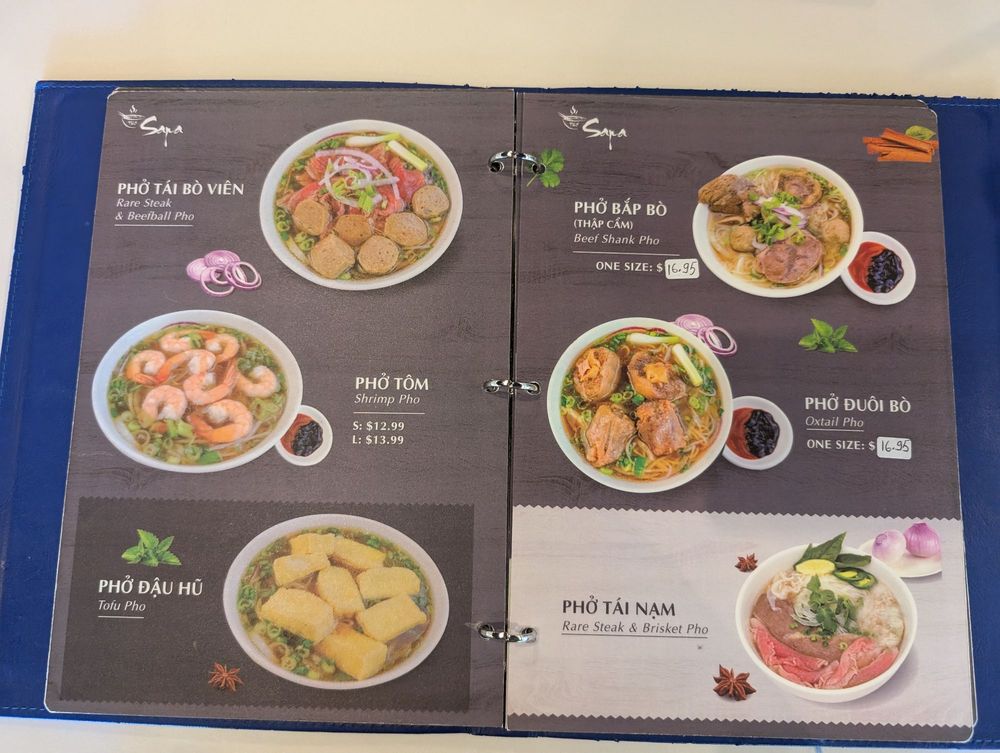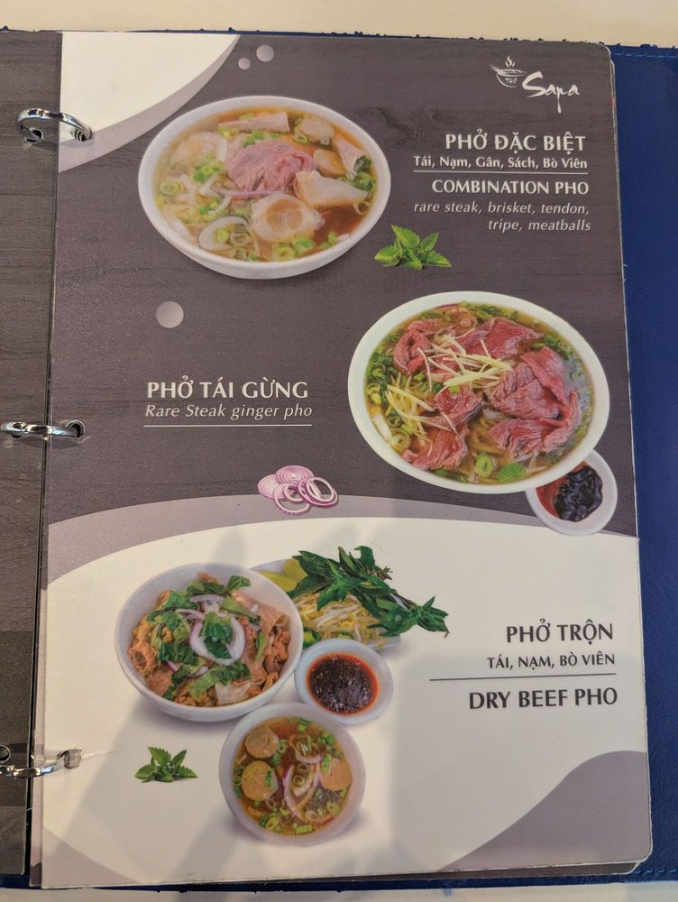 Pho Sapa Menu